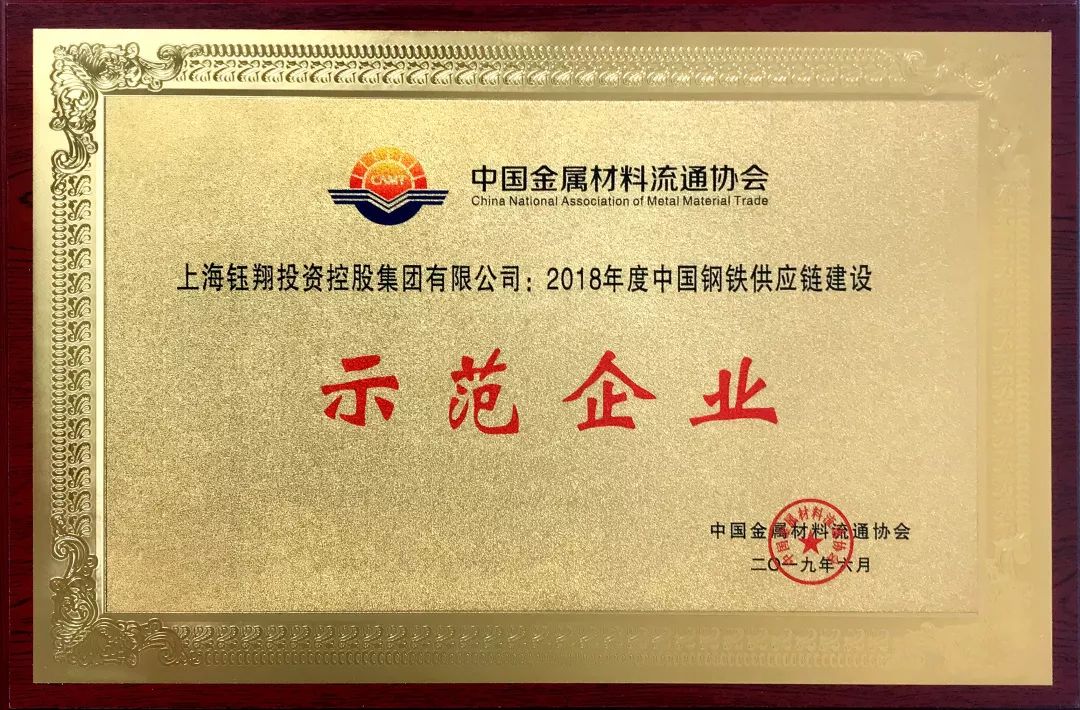 鈺翔控股集團榮獲中國金屬材料流通協會2018年度中國鋼材銷售50強、2018年度中國鋼鐵供應鏈建設示范企業兩項殊榮